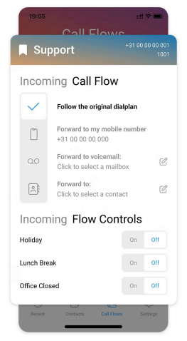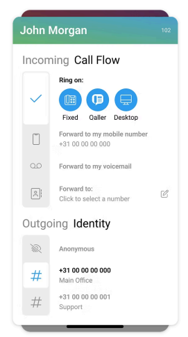 Hier kun je de inkomende gesprekken op je telefoonnummers beheren. Zo stel je snel en eenvoudig een doorschakeling naar je mobiele telefoonnummer in.